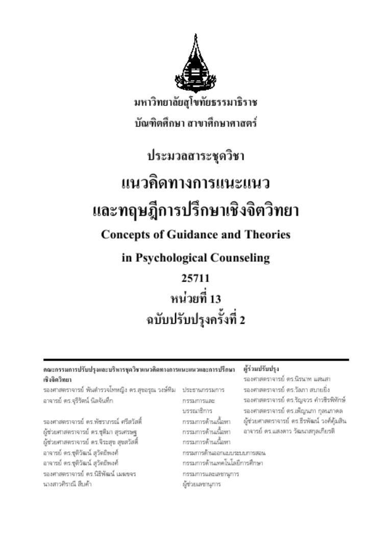 25711 ประมวลสาระ แนวคิดทางการแนะแนวและทฤษฎีการปรึกษาเชิงจิตวิทยา (ฉบับปรับปรุงครั้งที่ 2)